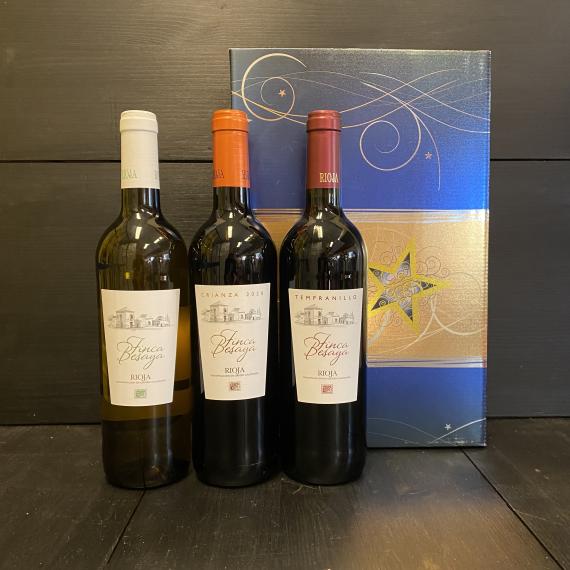 In deze mooie kerstbox vindt je drie prachtige Spaanse wijnen.