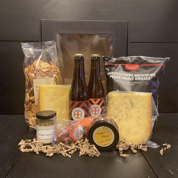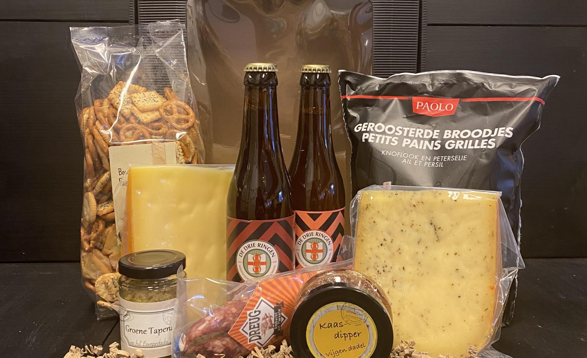 Deze boer geniet van het leven. Deze box is gevuld met twee lekkere Drie Ringen biertjes uit Amersfoort. Met lekkere stukjes kaas, worst en een handje familiemix is er ook genoeg om te knabbelen.